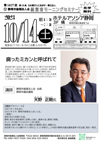 【モーニングセミナー】「腐ったミカンと呼ばれて」(天野 正剛 氏)10/14 開催