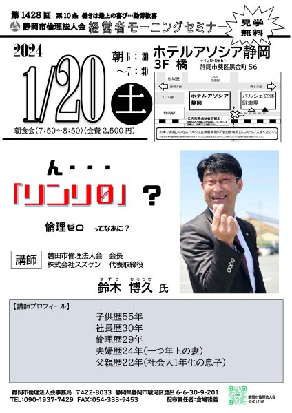 鈴木博久氏の講話は、1月20日(土)の経営者モーニングセミナーで聴講できます。
