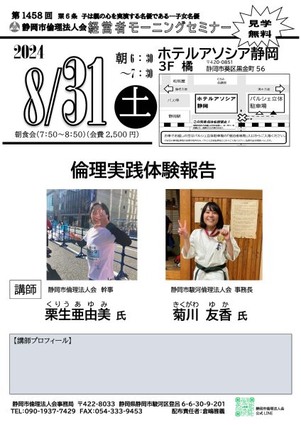 【モーニングセミナー】「倫理実践体験報告」(栗生亜由美 氏・菊川友香 氏)8/31 開催